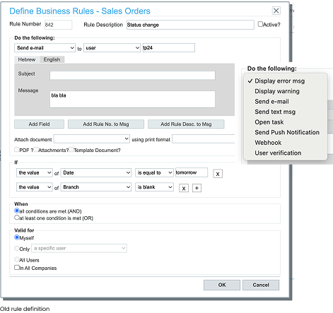 Define rule look like this, the options for actions open in this drop down.