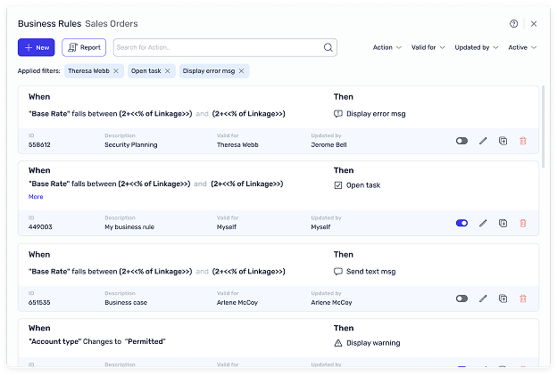 Based on this, we redesigned the layout into a side-by-side structure – allowing users to view both conditions and actions at a glance. We added filters, data highlights, and contextual actions directly in the rule card.