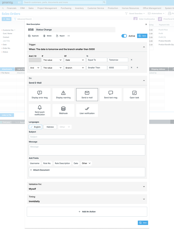 This successful redesign not only improved usability but also set a new design standard for future automation tools within Priority. In the latest version, we elevated the feature even further by integrating AI-powered options for clearer, more interactive workflows.